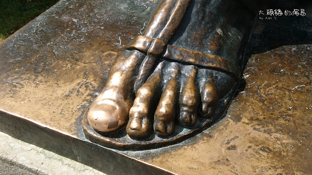 很多人都喜歡摸摸他的左腳大拇指, 所以他的腳趾現在非常光亮! 據說摸他的腳趾可以帶來好運跟重遊斯普利特...