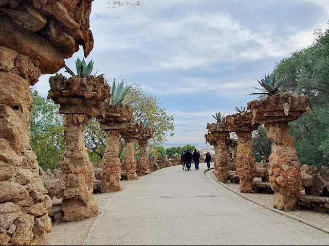 先看到的是這個石柱長廊(porticos and viaducts), 柱子的結構很像一棵棵大樹, 這裡可以看到高第的獨特藝術風格和加入大自然元素的建築理念.